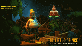 The Little Prince is a comical arcade game adaptation of the novella of the same name by Antoine de Saint-Exupéry. The prince is no longer the little boy that he once was. He's old, bitter, and redneck, yet he works all day long to protect his beloved rose, who is the planet B-612's source of gravity. The rose's glass shell can only withstand a limited amount of damage. It's up to the prince to keep her safe from an influx of wild sheep and an overgrowth of baobab trees, which weakens the rose's roots.